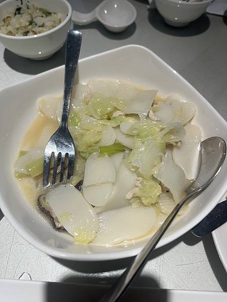 接下來的客家小炒、寧式年糕及黃金南瓜每一道都非常好吃,可以看到諾寶吃的嘴巴都停不住,我也看了菜單跟推薦的菜品,
