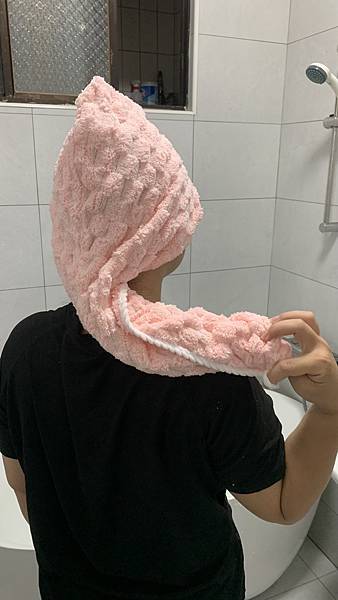 我們通常都要先用大浴巾擦乾,再用來包頭