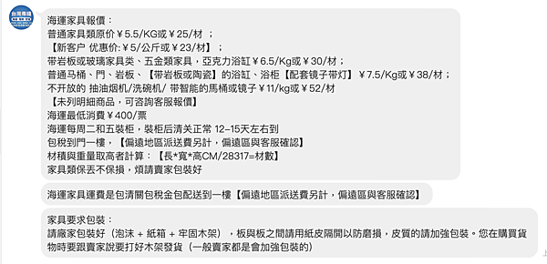 首先,淘寶上提供的家具種類豐富,無論是上下舖床、實用的沙發,還是設計感十足的自動茶几,選擇多樣且風格多變。更讓人驚喜的是,淘寶的家具價格相對比台灣實體店便宜許多,尤其是購買大件商品,差價相當可觀。所以其實我們家滿多小東西都會定期透過淘寶作採購,例如喬姊姊的衣服,碩哥的玩具等,但是大型傢俱就真的是第一次了,所以很多的疑問就會透過詢問『互聯台灣集運公司』的小編詢問了。