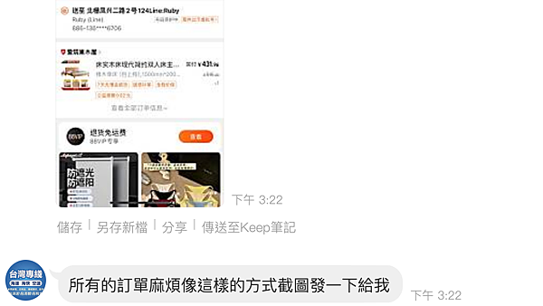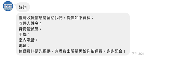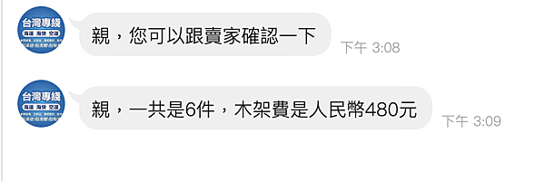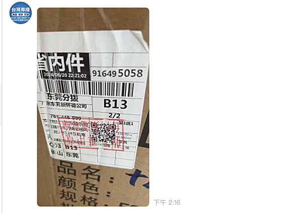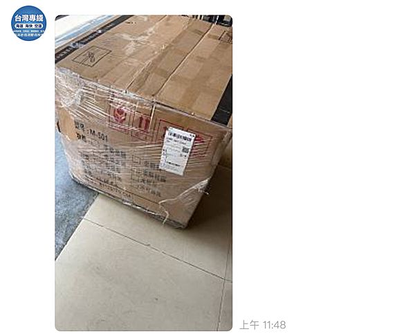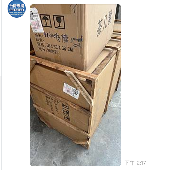 2. 倉庫集貨:當淘寶商家將家具寄送到集運倉庫,互聯台灣會通知我包裹已入倉,並提供照片確認。