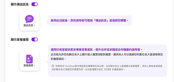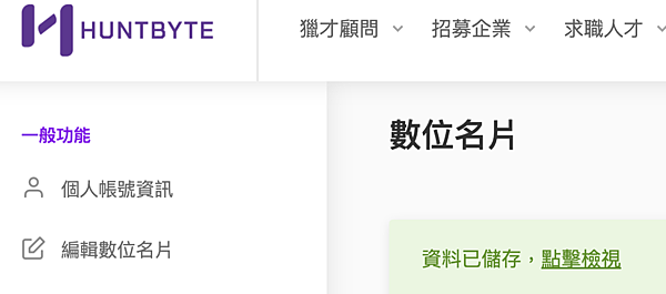 透過HuntByte 數位名片還能連結在他們的網站,如果有建立履歷,也能夠過網站上的媒合,可以看到履歷以及訊息通知,不只可以當作求職的利器,也可以推薦人選給獵頭轉分潤獎金,非常方便。